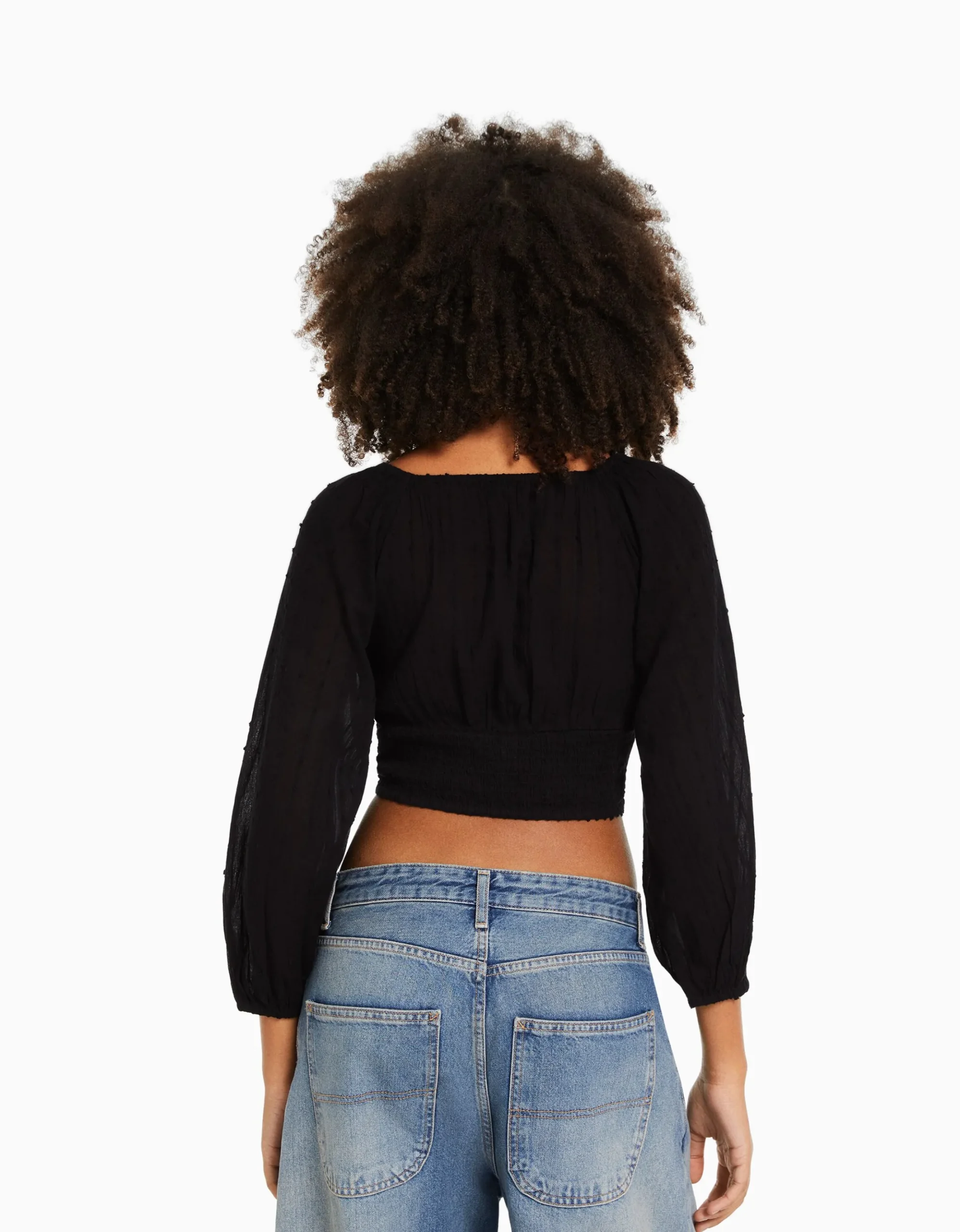 Blusa manga larga volumen cuello pico-BERSHKA Discount