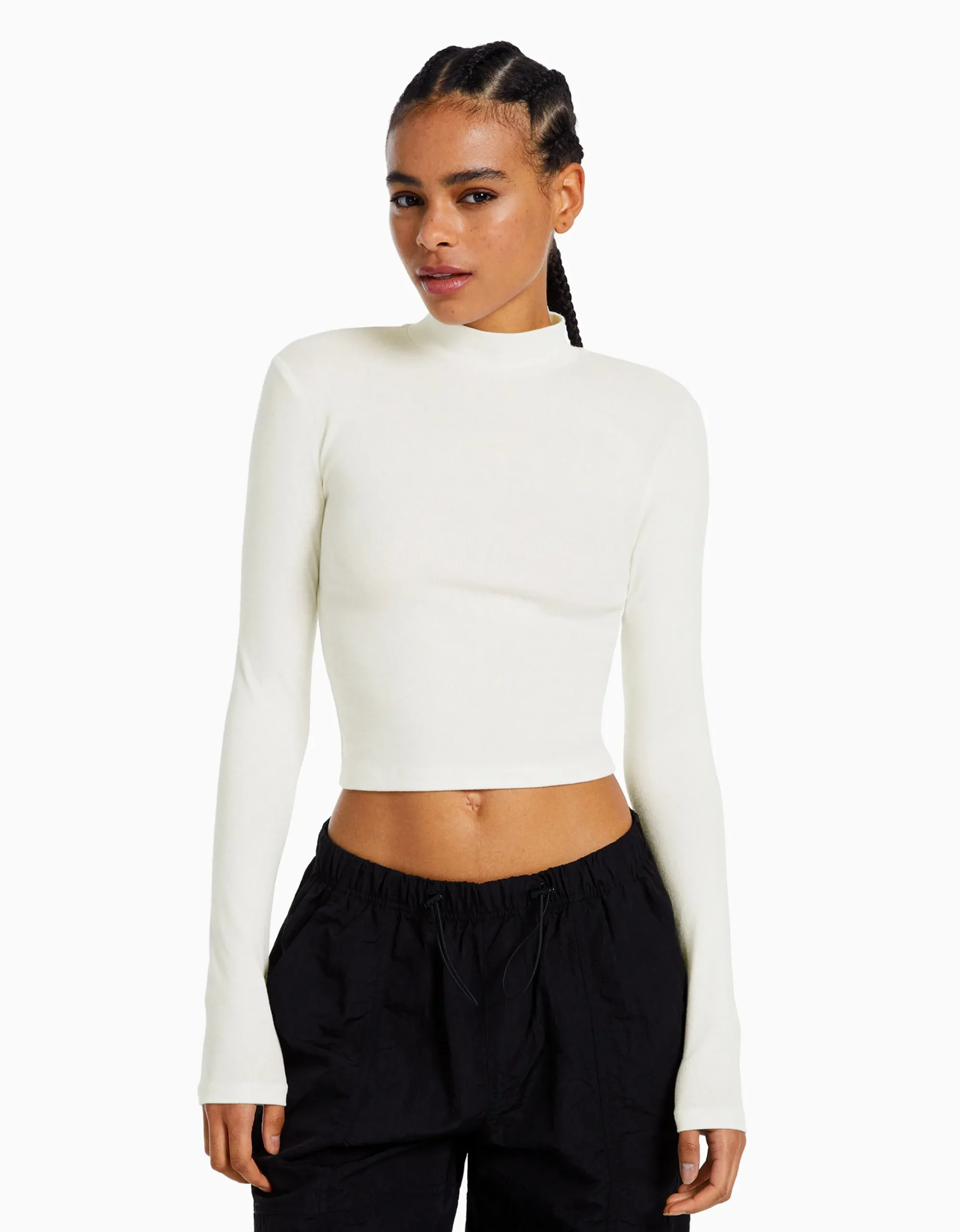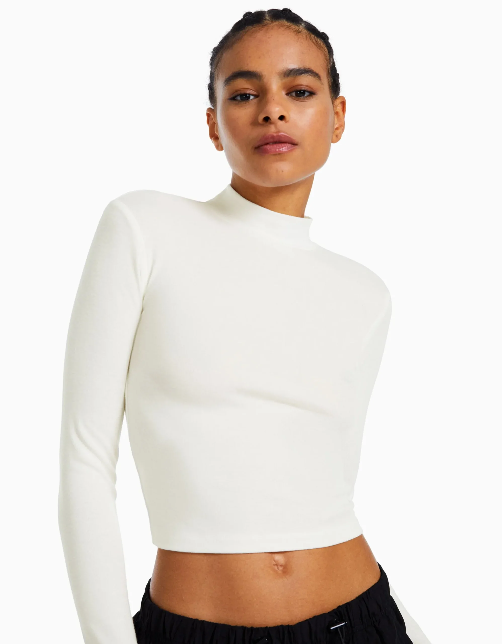 Camiseta cuello alto manga larga-BERSHKA Fashion