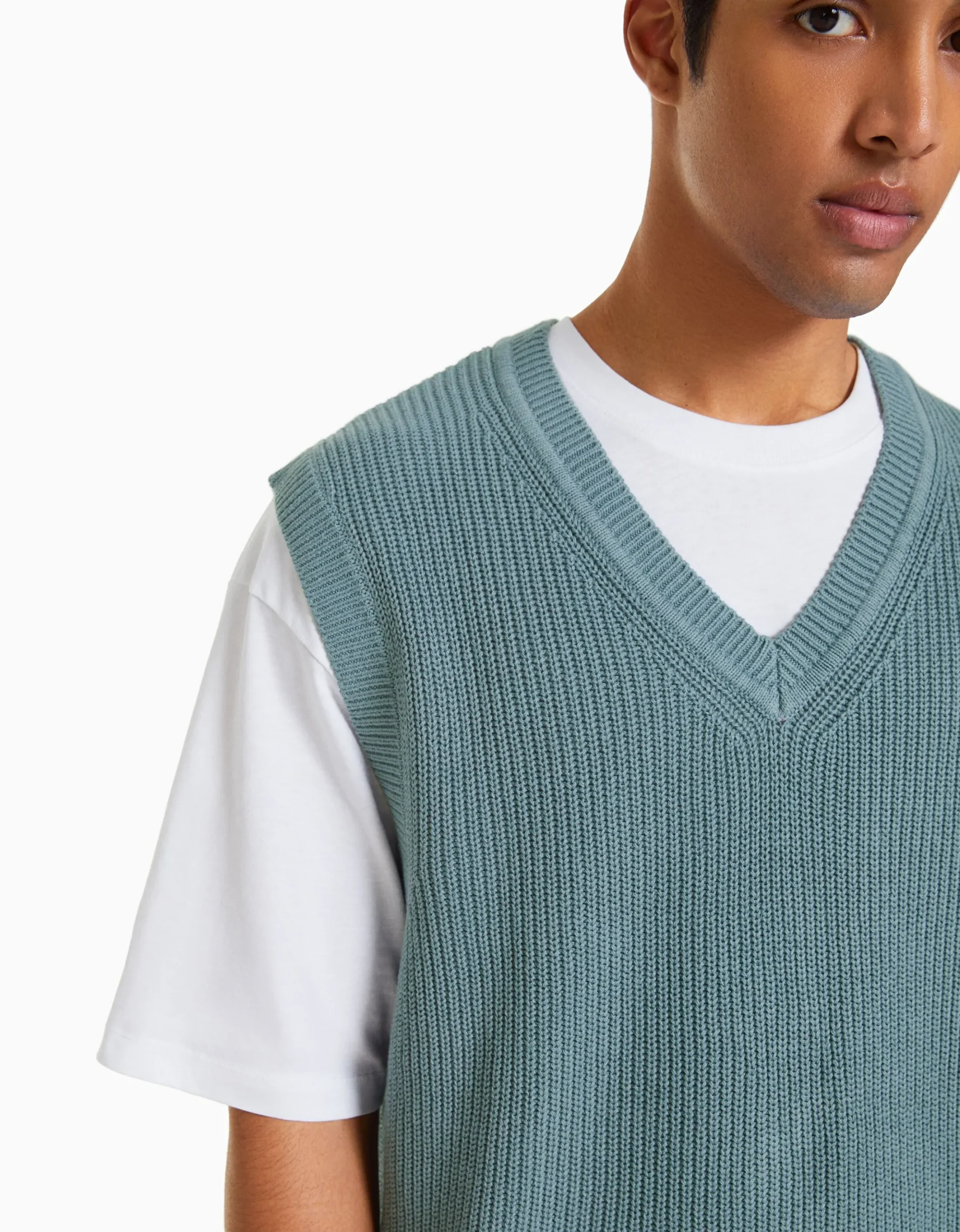 Chaleco punto cuello pico-BERSHKA Cheap