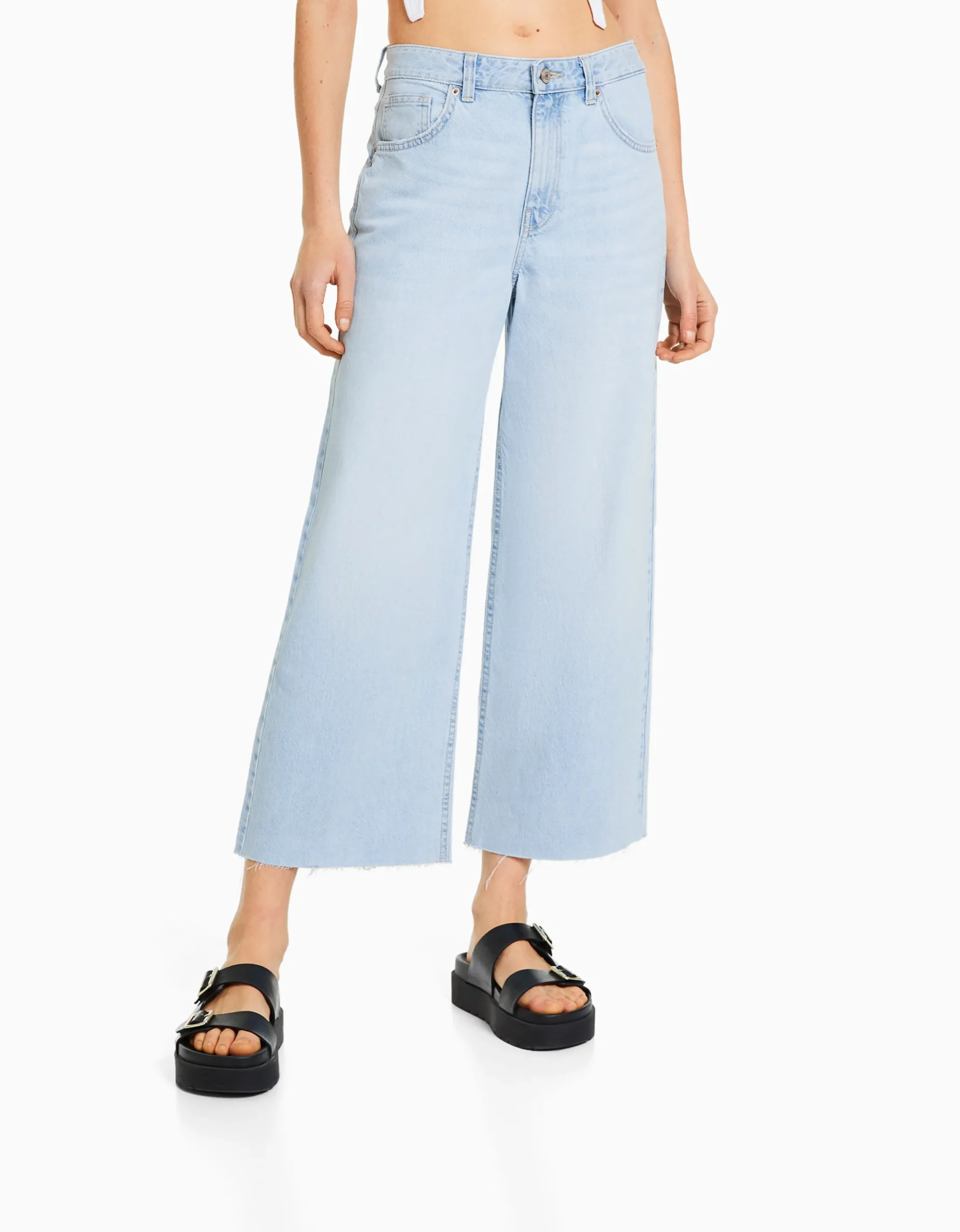 Jeans wide leg cropped-BERSHKA Hot