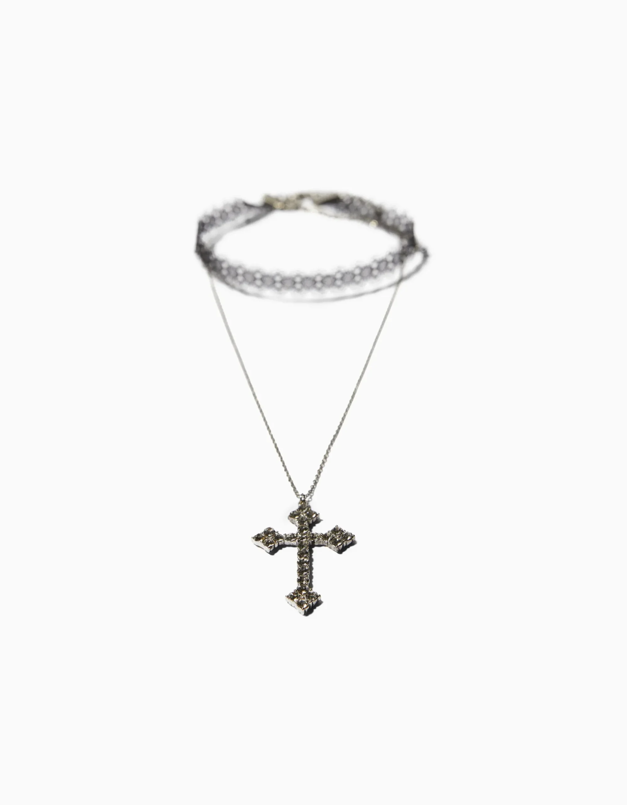 Set 2 collares choker lace cadena cruz-BERSHKA Flash Sale