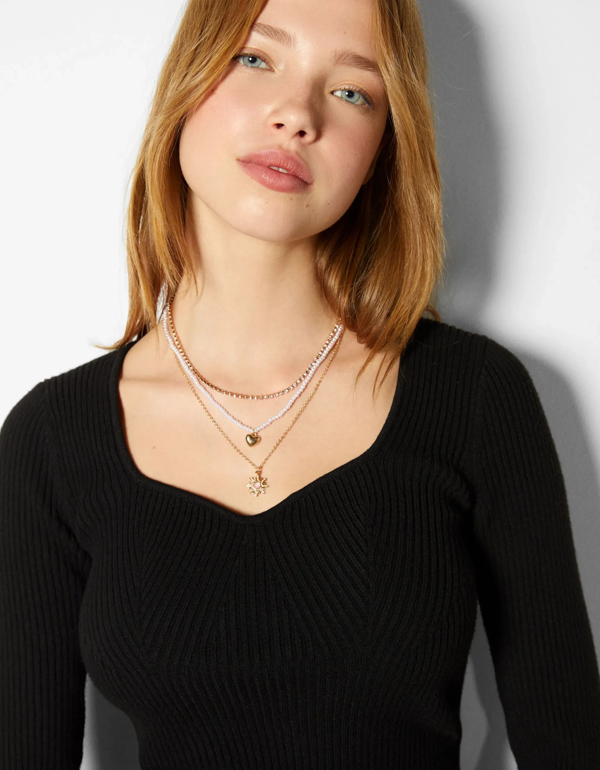Set 4 collares cadena corazón-BERSHKA Shop