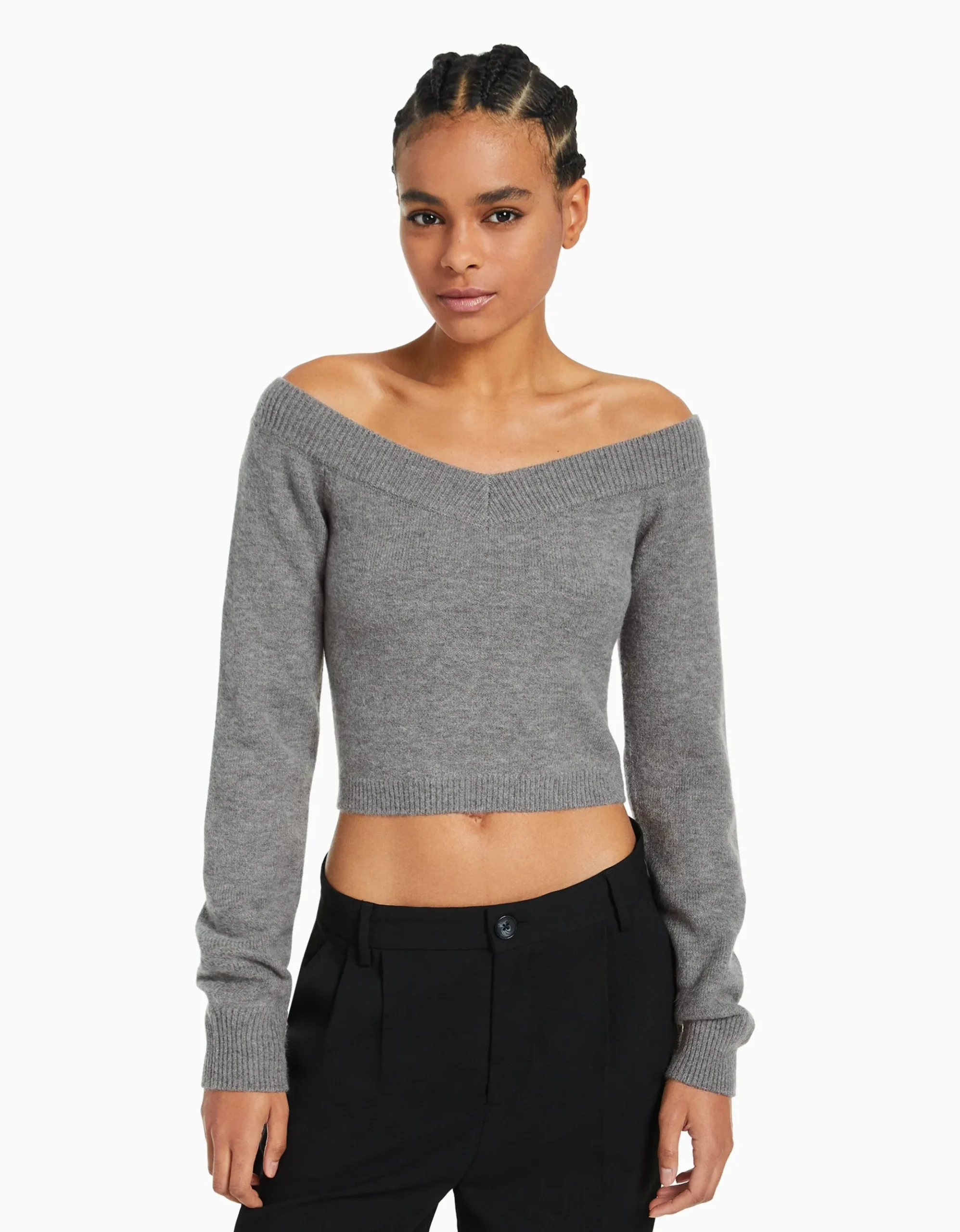 Jersey cuello pico cropped-BERSHKA Cheap