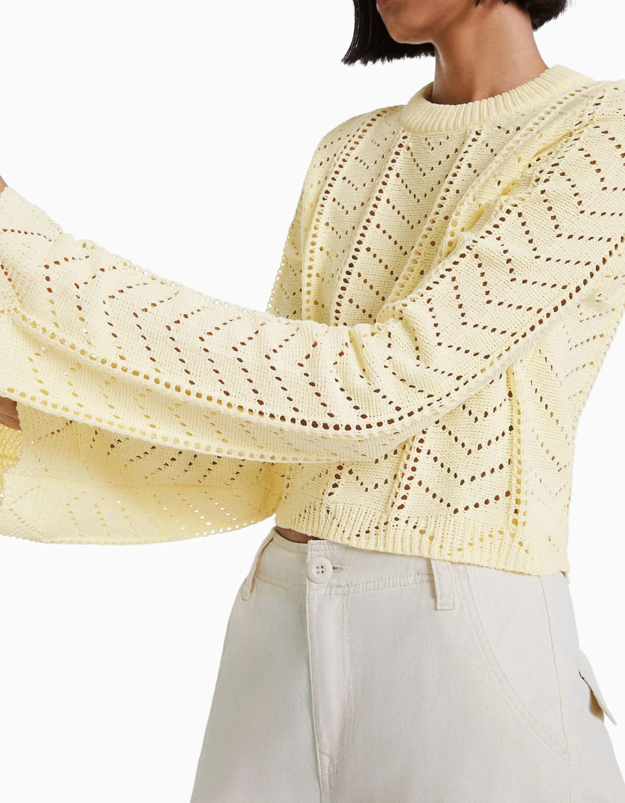 Jersey cuello redondo calados-BERSHKA Shop