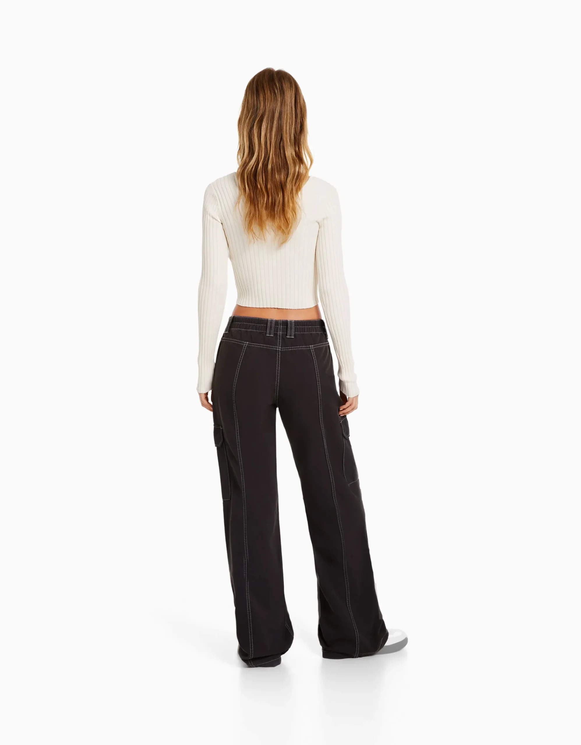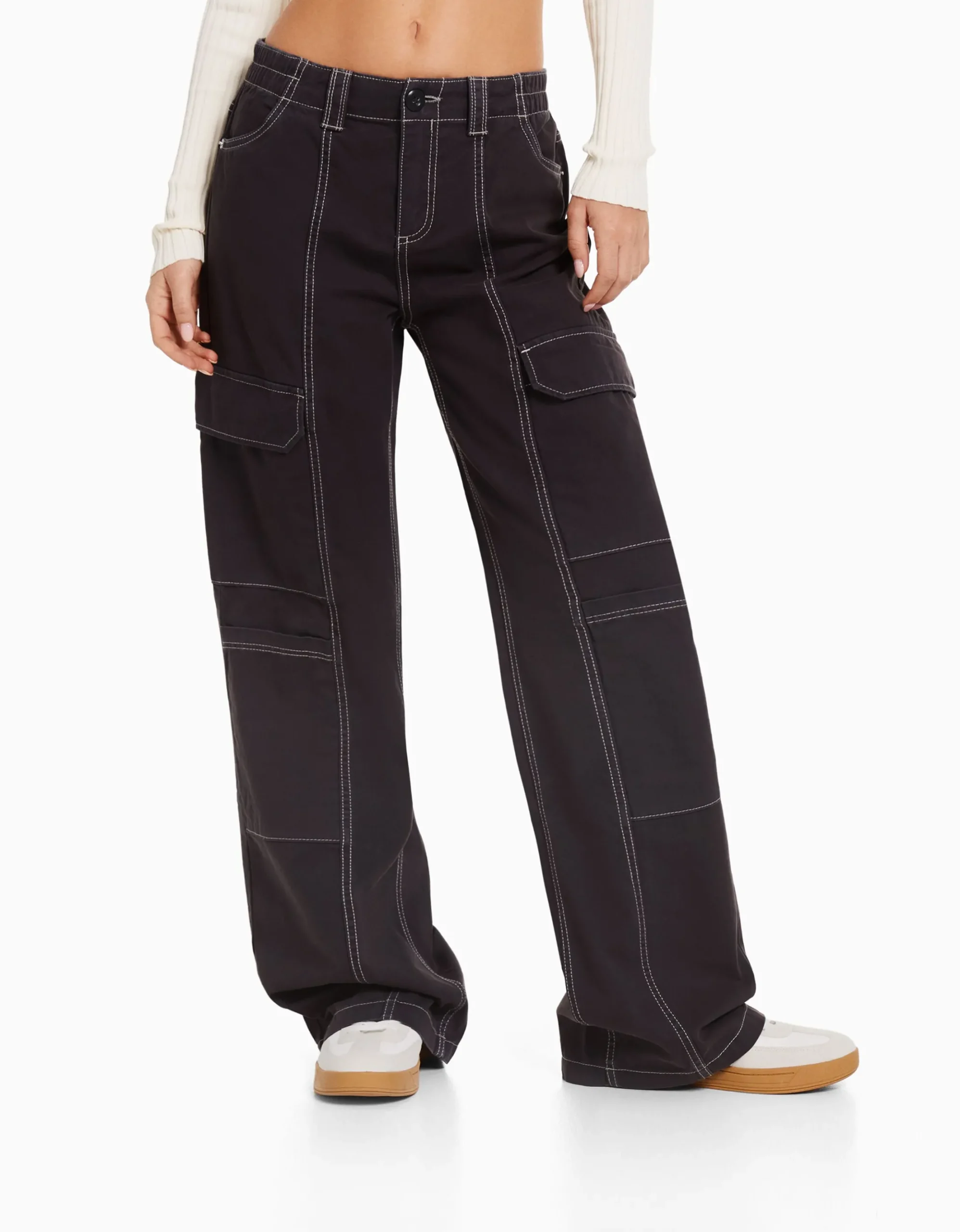 Pantalón cargo low waist algodón hilo contraste-BERSHKA Flash Sale