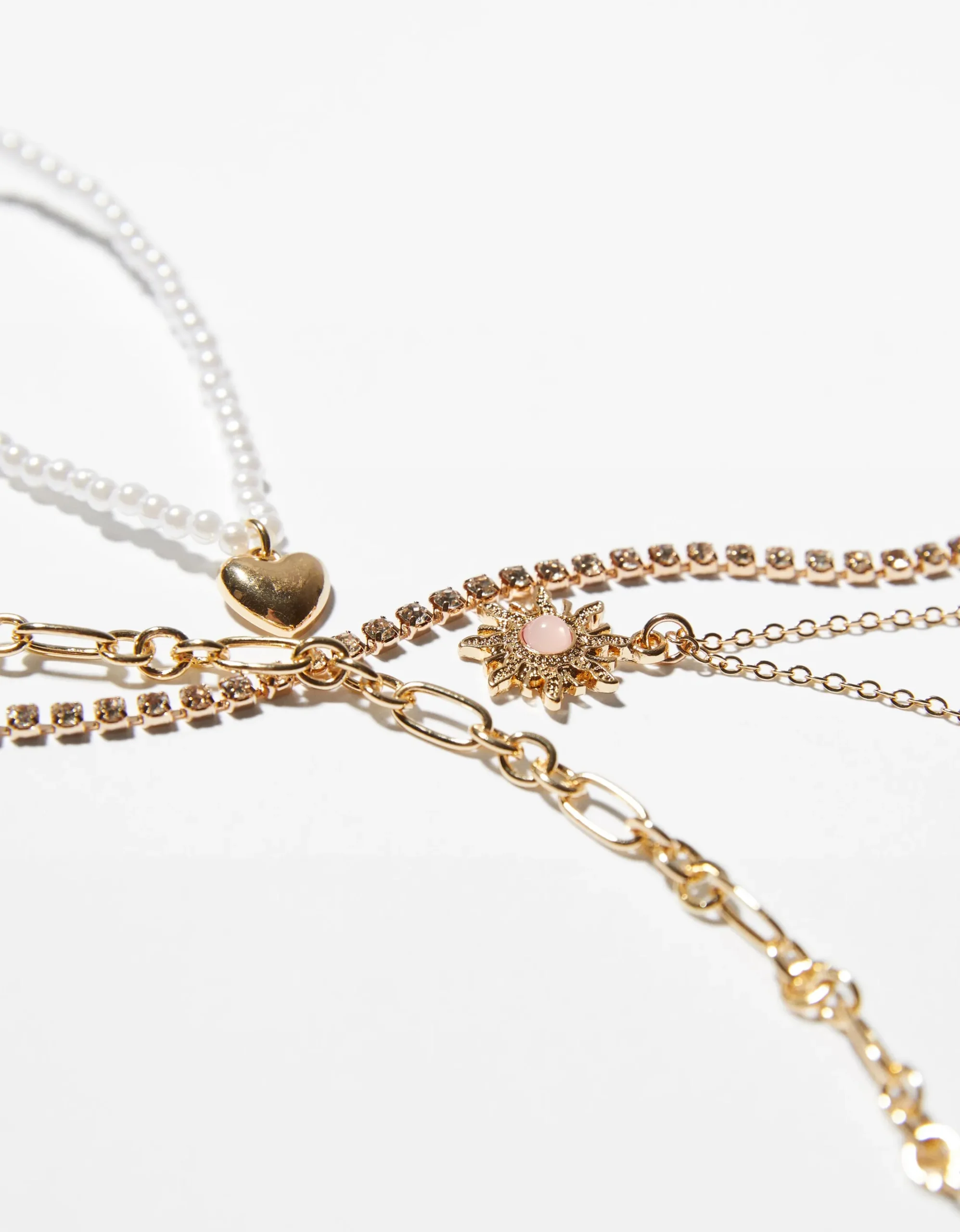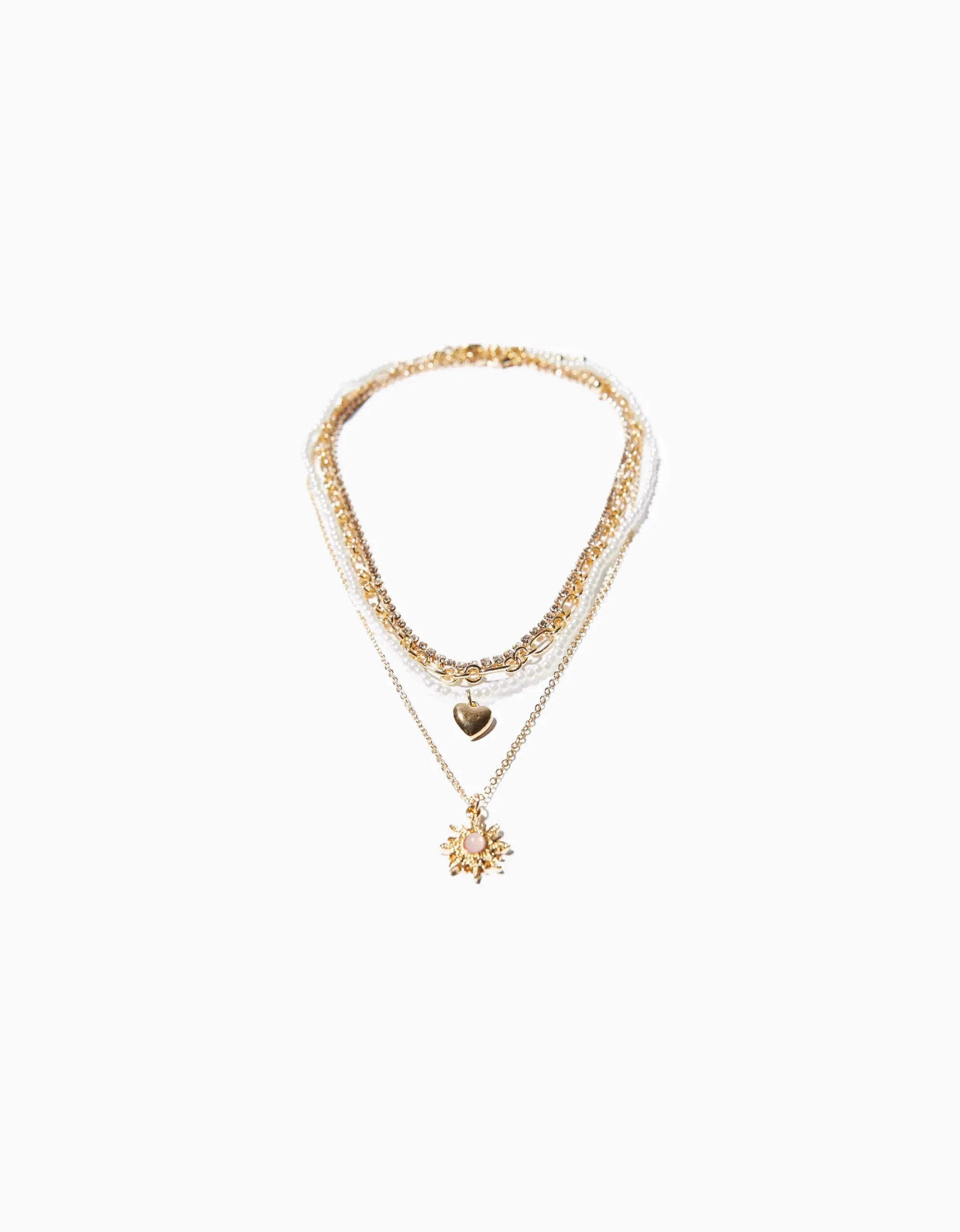 Set 4 collares cadena corazón-BERSHKA Shop