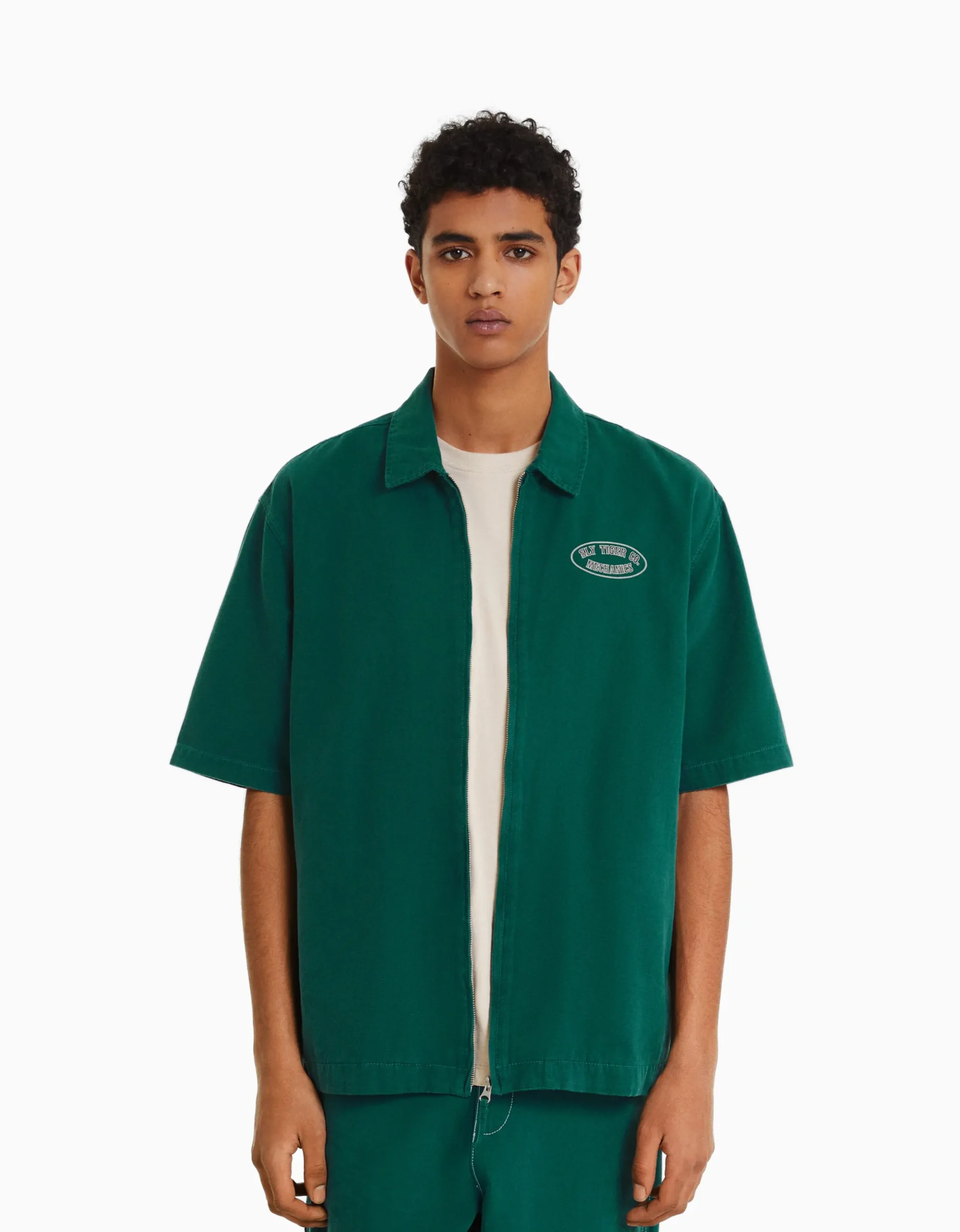 Sobrecamisa manga corta canvas cremallera-BERSHKA Sale